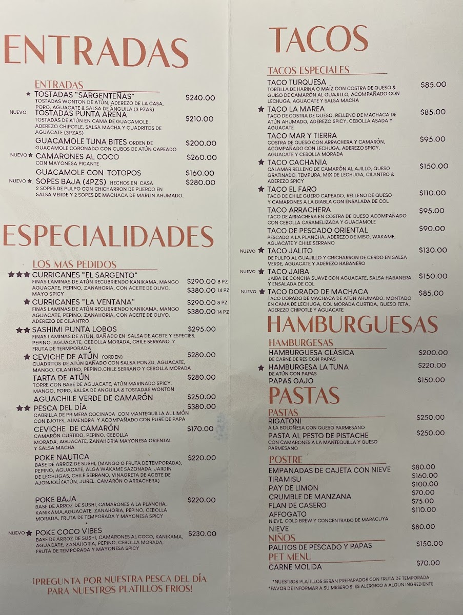 La Tuna BCS offers a menu that blends casual beachside bites with thoughtfully prepared coastal flavors. The selection leans into fresh seafood favorites and approachable Mexican staples, creating an inviting spread that suits a relaxed day or evening by the ocean.